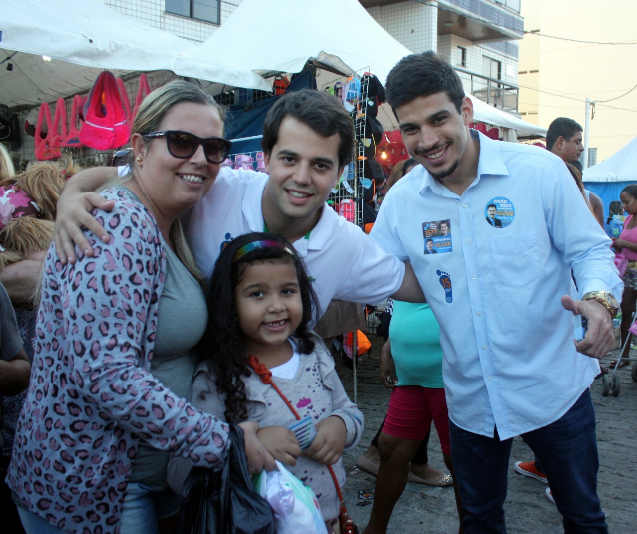 Ainda na caminhada, no dia de Nossa Senhora de Nazareth, Guilherme e Marco Antônio fotografaram ao lado de eleitores, visitantes e familiares no centro histórico da cidade (Foto: Julio Cesar Cruz)